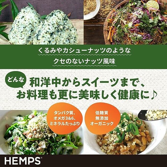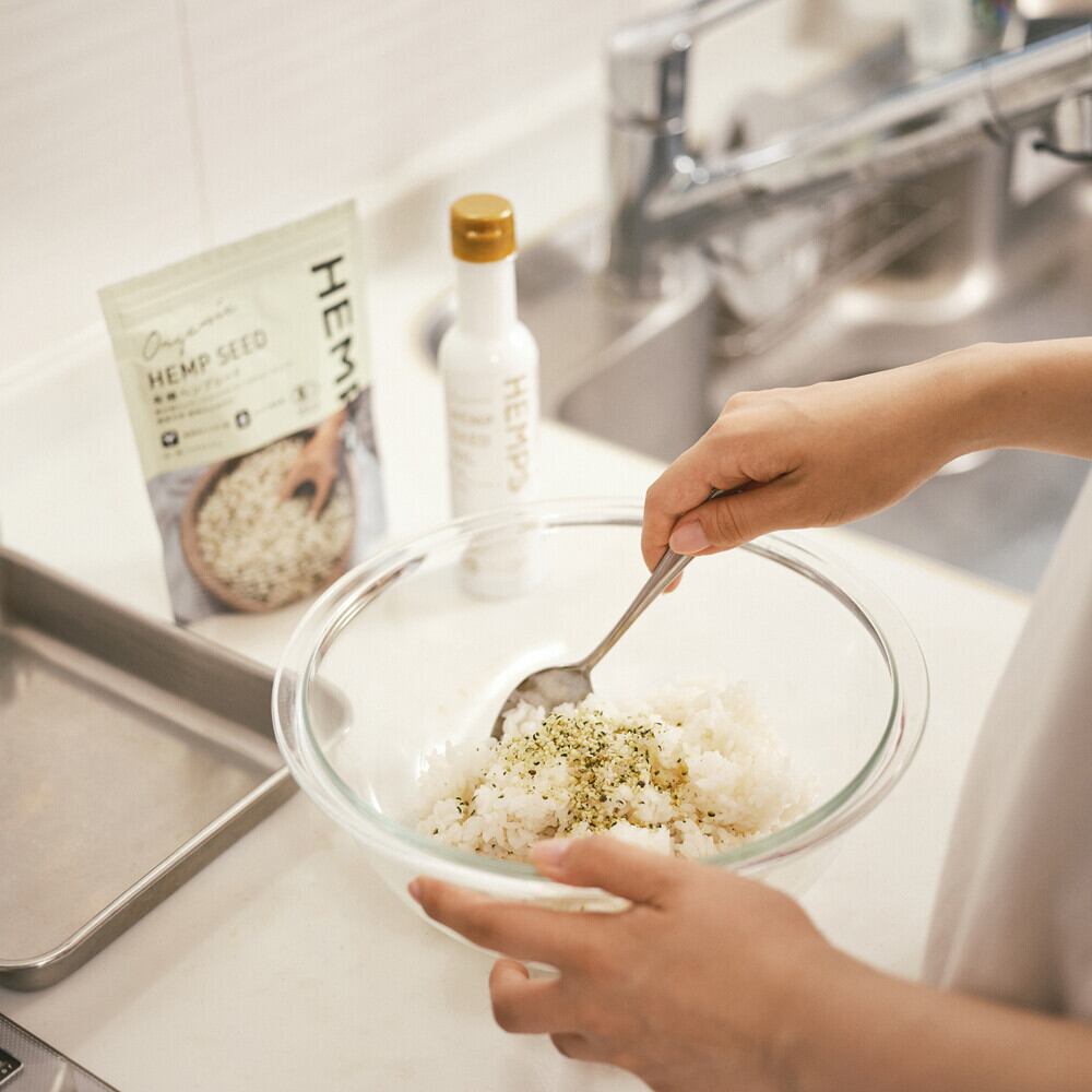 【簡単&美味しい!簡単使い方】ヘンプシードは、「いつもの料理に振りかけるだけ!」サラダの仕上げに振りかける、ごはんに混ぜておにぎりに、和え物や、簡単に作れるヘンプバターも人気です。美味しく栄養価をアップすることができます。