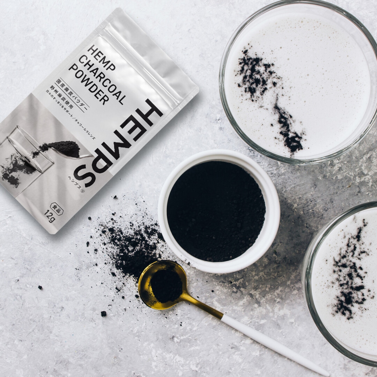 【麻炭って何?】 HEMPSの麻炭は、栃木県の数少ない国産ヘンプ「野州麻(トチギシロ)」の茎を選別後、製炭窯で麻炭に焼き上げパウダー状にしました。ヘンプの茎は、木や竹などの炭原料と比べ、非常に軽いのが特徴です。また、麻炭は多孔質性に非常に優れ、炭化してもその特徴を有しています。多孔性に優れている麻炭パワーで体をキレイに!毎日のスッキリ&美容をサポートします。